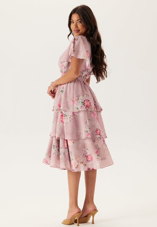 Floral Flutter Tiered Midi Dress