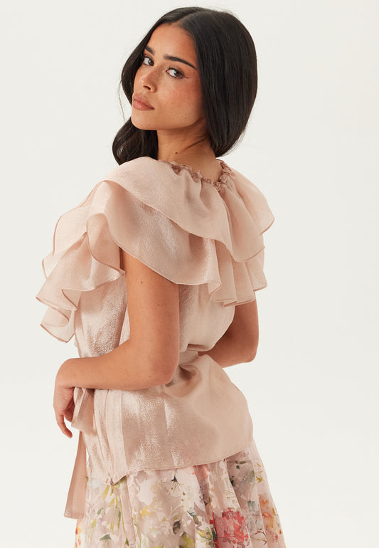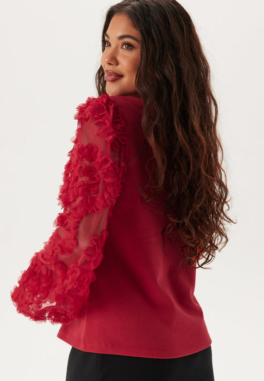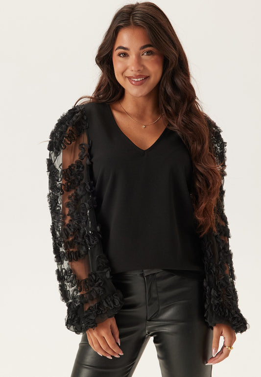 3D Floral Sleeve V-neck Top